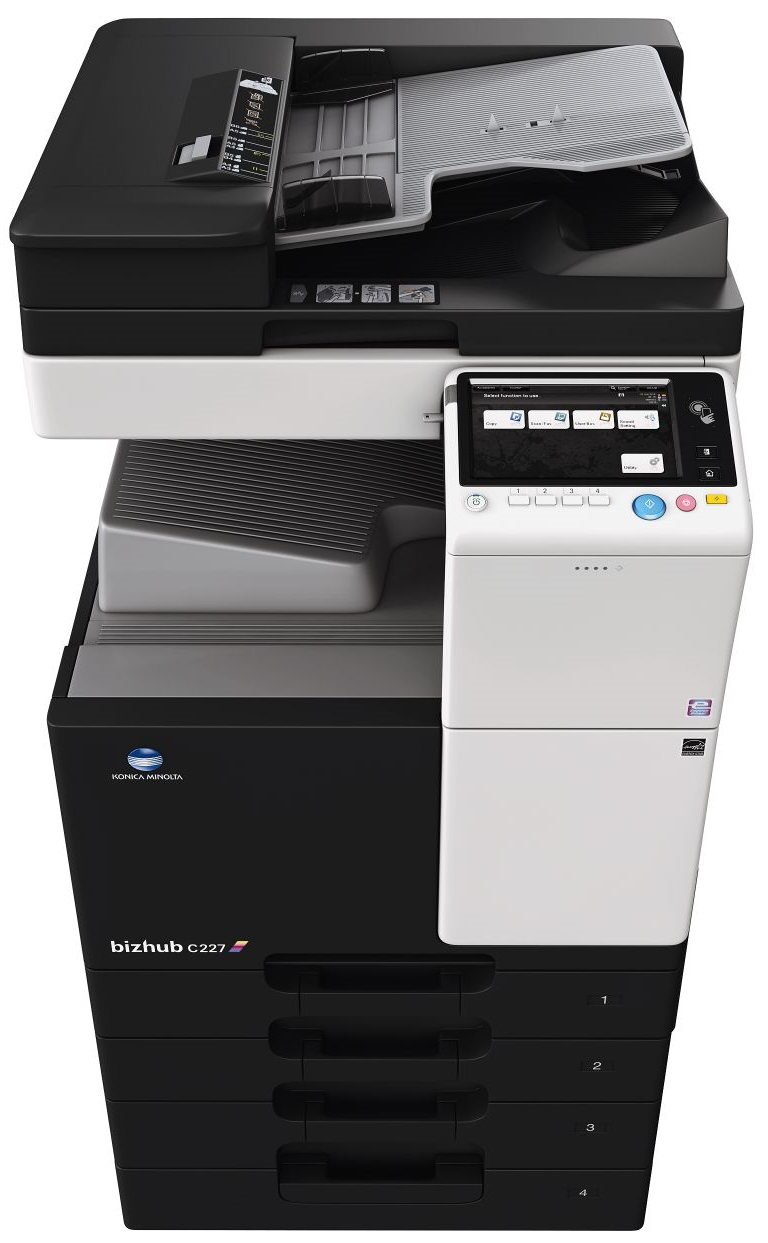 Bizhub C227 je multifunkční barevný stroj A3 s rychlostí tisku 22 stran/min. Samozřejmostí je rychlé oboustranné barevné skenováni. Jednoduché ovládání pomocí dotykového displeje. Možnost zřízení až 1000 uživatelských účtů a řízení jejich práv pro jednotlivé uživatele. Stroj disponuje funkcí NFC pro propojení s mobilním zařízením jako je smartphone nebo tablet. Zařízení je vhodné do běžného kancelářského provozu.