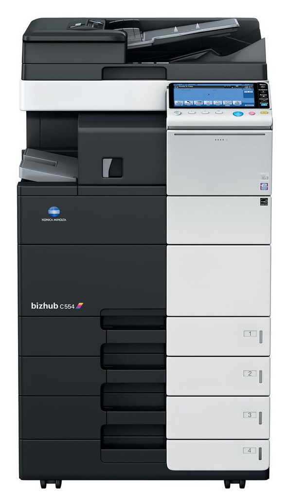 Bizhub C554e je komunikační centrum s rychlostí 55 stran za minutu černobíle a barevně. Standardně tiskový řadič Emperon™ s podporou PCL 6c, PostScript 3, PDF 1.7 a XPS. Kapacita papíru 500 + 500 listů a 150 listů boční vstup. Média od A6 do SRA3, dlouhý papír 1,2 m gramáž 52 – 300 g/m2. Standardně 2 GB paměti, 250 GB pevný disk a Gigabit Ethernet. Oboustranně skenující jednoprůchodový automatický podavač originálů, kapacita 100 listů.